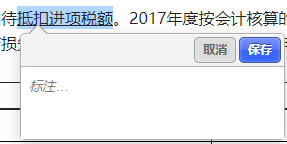 (2)在標(biāo)注窗口中,如考生不添加標(biāo)注內(nèi)容,直接點(diǎn)擊保存按鈕,選中的文字會以高亮顯示,當(dāng)鼠標(biāo)移動到高亮顯示的文字上時,標(biāo)注框會自動出現(xiàn),如下圖所示。