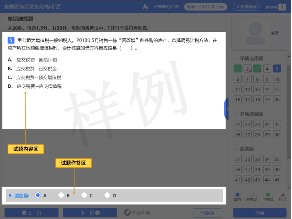 稅務(wù)師考試采用計算機(jī)化考試模式。為確保考試流程的順暢,考生們有必要在考前對機(jī)考操作系統(tǒng)進(jìn)行深入的了解與熟悉。這樣的預(yù)備工作能夠避免考生在考試當(dāng)日由于操作不熟練而浪費(fèi)寶貴的答題時間。對于即將參加稅務(wù)師考試的考生,了解機(jī)考系統(tǒng)的整體布局是至關(guān)重要的。東奧會計在線特此為大家整理了稅務(wù)師機(jī)考系統(tǒng)的界面布局,幫助考生們能夠迅速適應(yīng)考試環(huán)境。