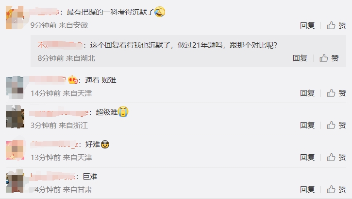 考生反饋截圖來源:新浪微博