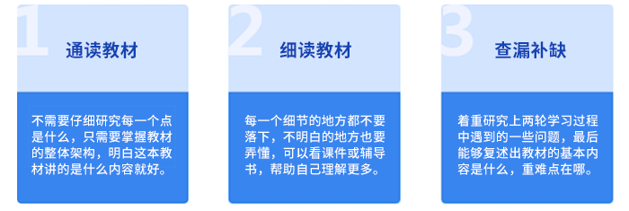 預(yù)習(xí)階段時(shí)間充裕,盡管只能依賴舊教材,但這也是實(shí)現(xiàn)從零到一突破的最佳時(shí)機(jī)。建議考生們分三步走: