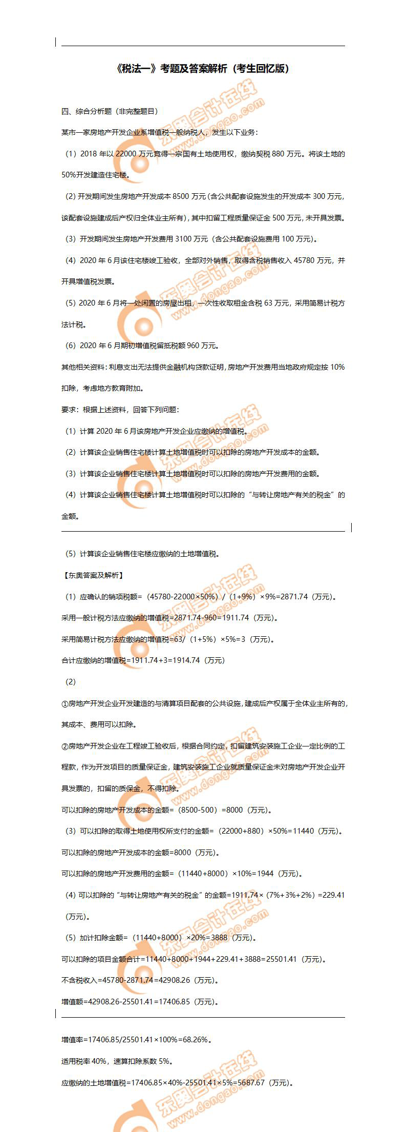 注:以上稅務(wù)師考試試題內(nèi)容由考生回憶反饋,東奧教研團(tuán)隊(duì)統(tǒng)計(jì),東奧會(huì)計(jì)在線整理發(fā)布