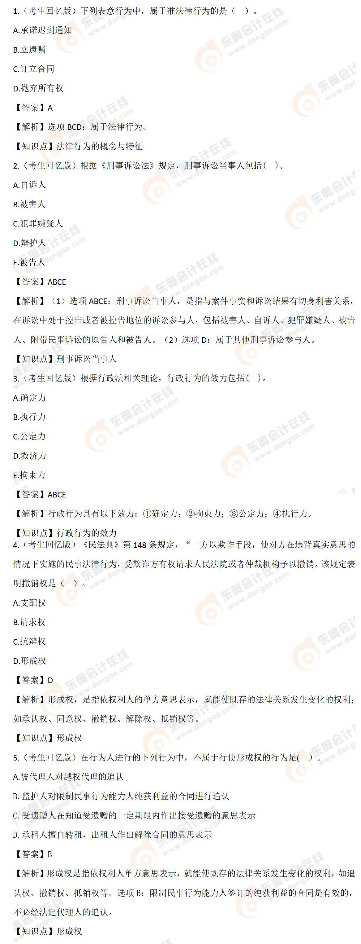 《涉稅服務(wù)相關(guān)法律》考題及答案解析-考生回憶版