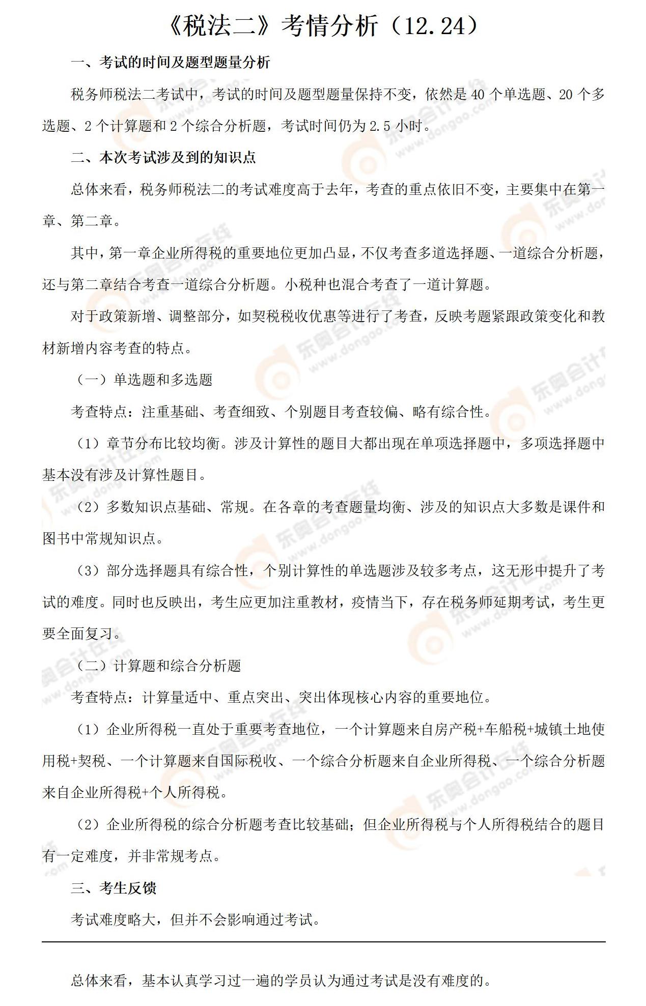 2022年稅務(wù)師延考稅法二考情及考點(diǎn)分析_考生回憶版