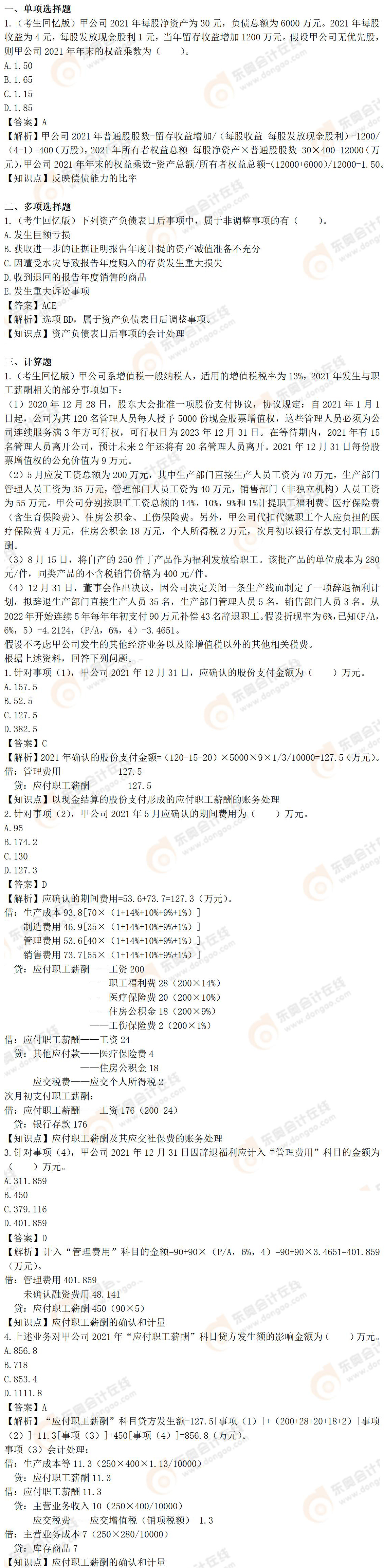 2022年稅務(wù)師二次延考財(cái)務(wù)與會(huì)計(jì)考題及參考答案_考生回憶版