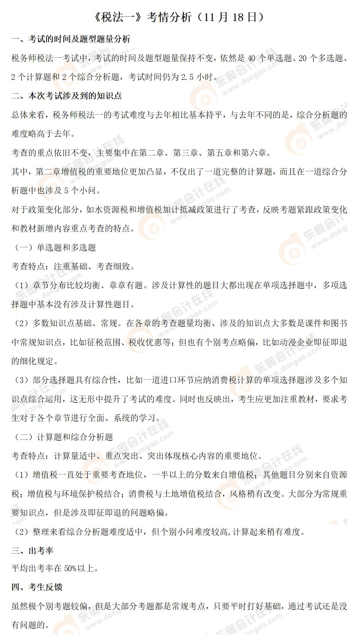 2023年稅務(wù)師考試稅法一考情及考點(diǎn)分析_考生回憶版