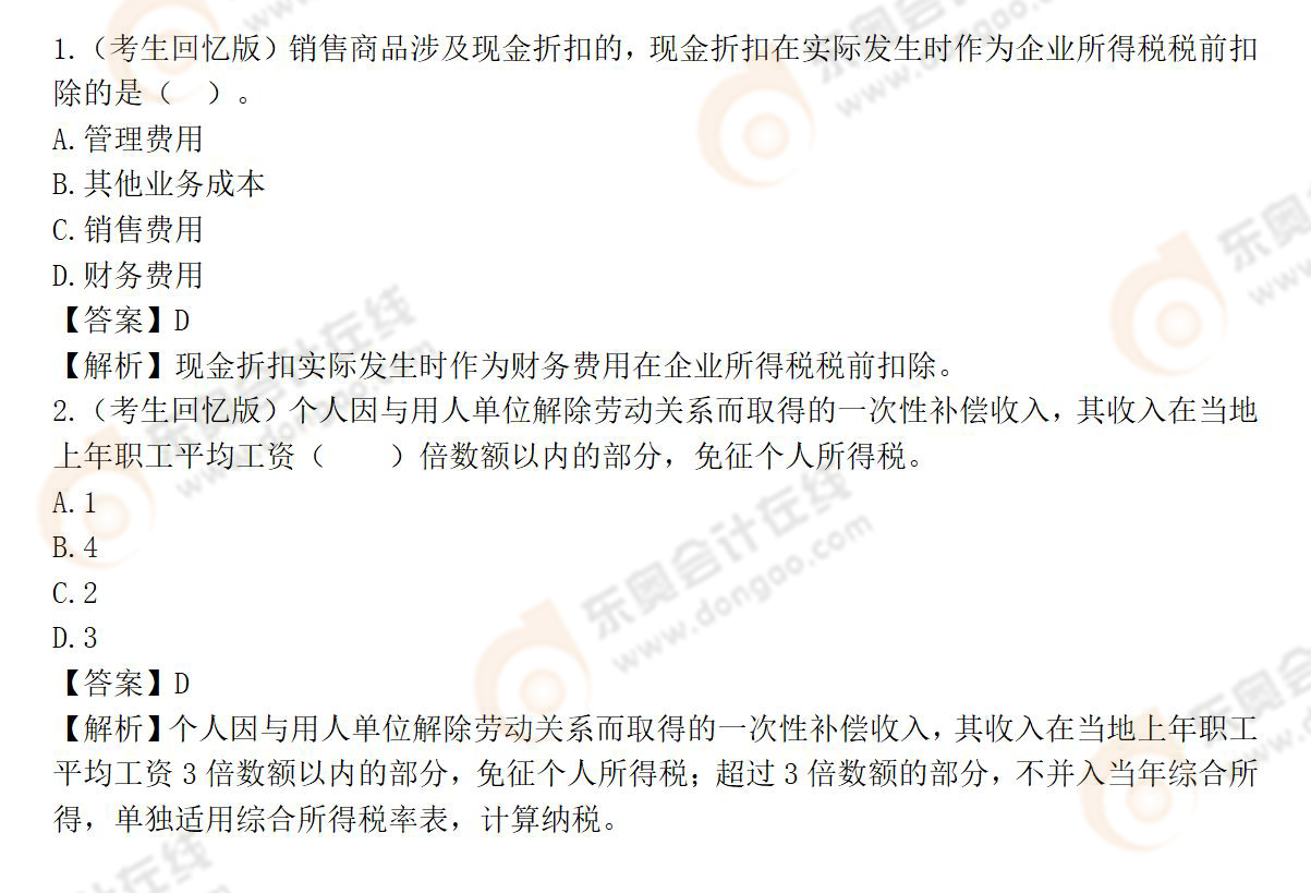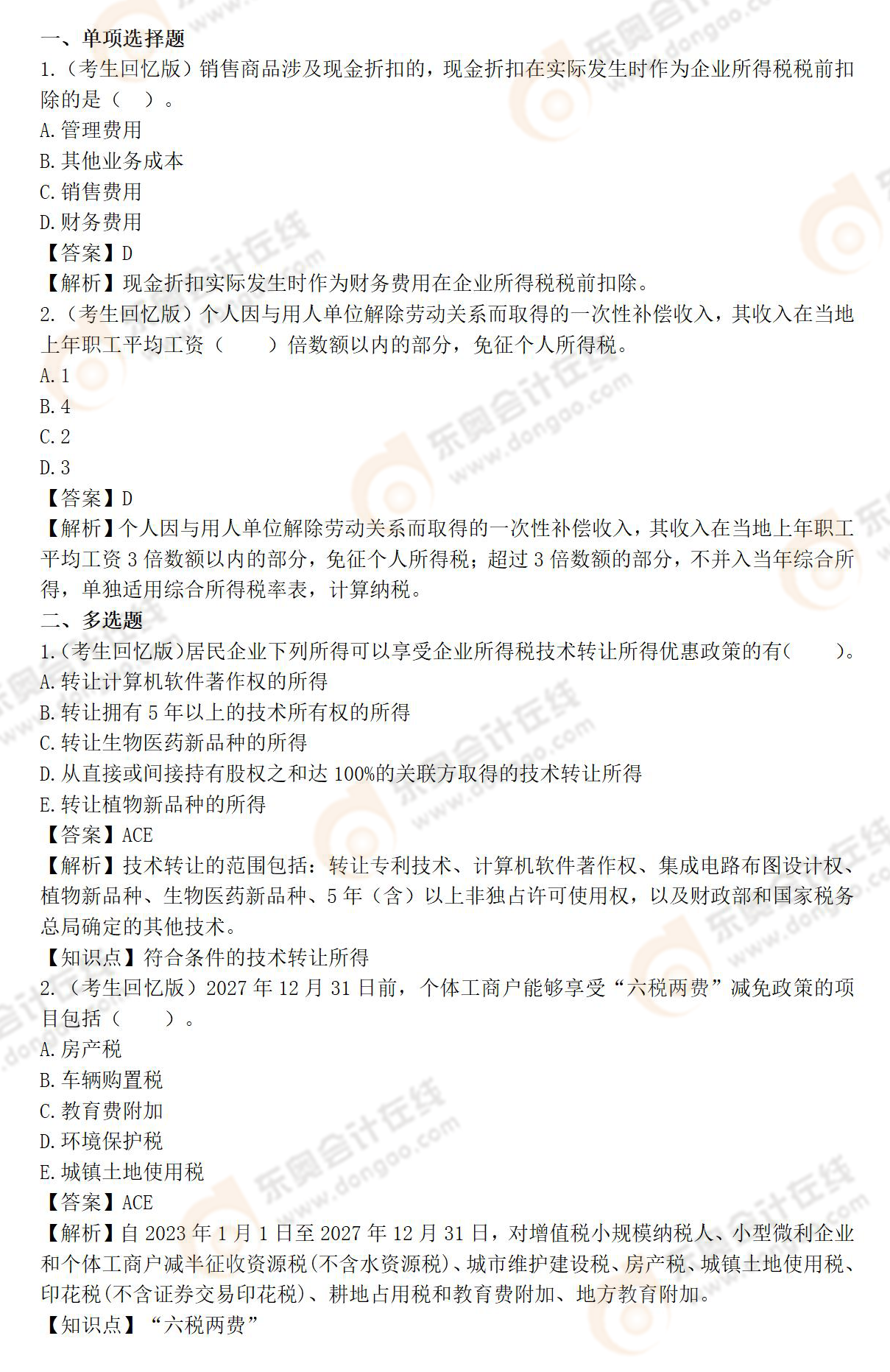 注:以上稅務(wù)師考試試題內(nèi)容由考生回憶反饋,東奧教研團隊統(tǒng)計,東奧會計在線整理發(fā)布