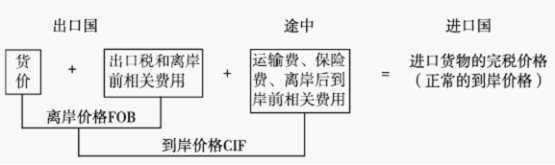關(guān)稅完稅價(jià)格=貨價(jià)C+至運(yùn)抵口岸的運(yùn)費(fèi)F+至口岸保險(xiǎn)費(fèi)I