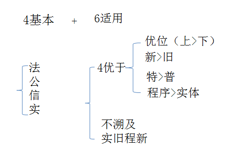 | 1.稅收法律主義 2.稅收公平主義 3.稅收合作信賴主義 4.實質(zhì)課稅原則 【小燕提示】法公信實 | 1.法律優(yōu)位原則 2.法律不溯及既往原則 3.新法優(yōu)于舊法原則 4.特別法優(yōu)于普通法原則 5.實體從舊、程序從新原則 6.程序優(yōu)于實體原則 |