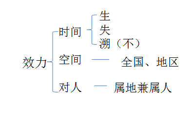 | 對人的效力 | 屬人、屬地、屬地兼屬人,我國采用的是屬地兼屬人原則 |