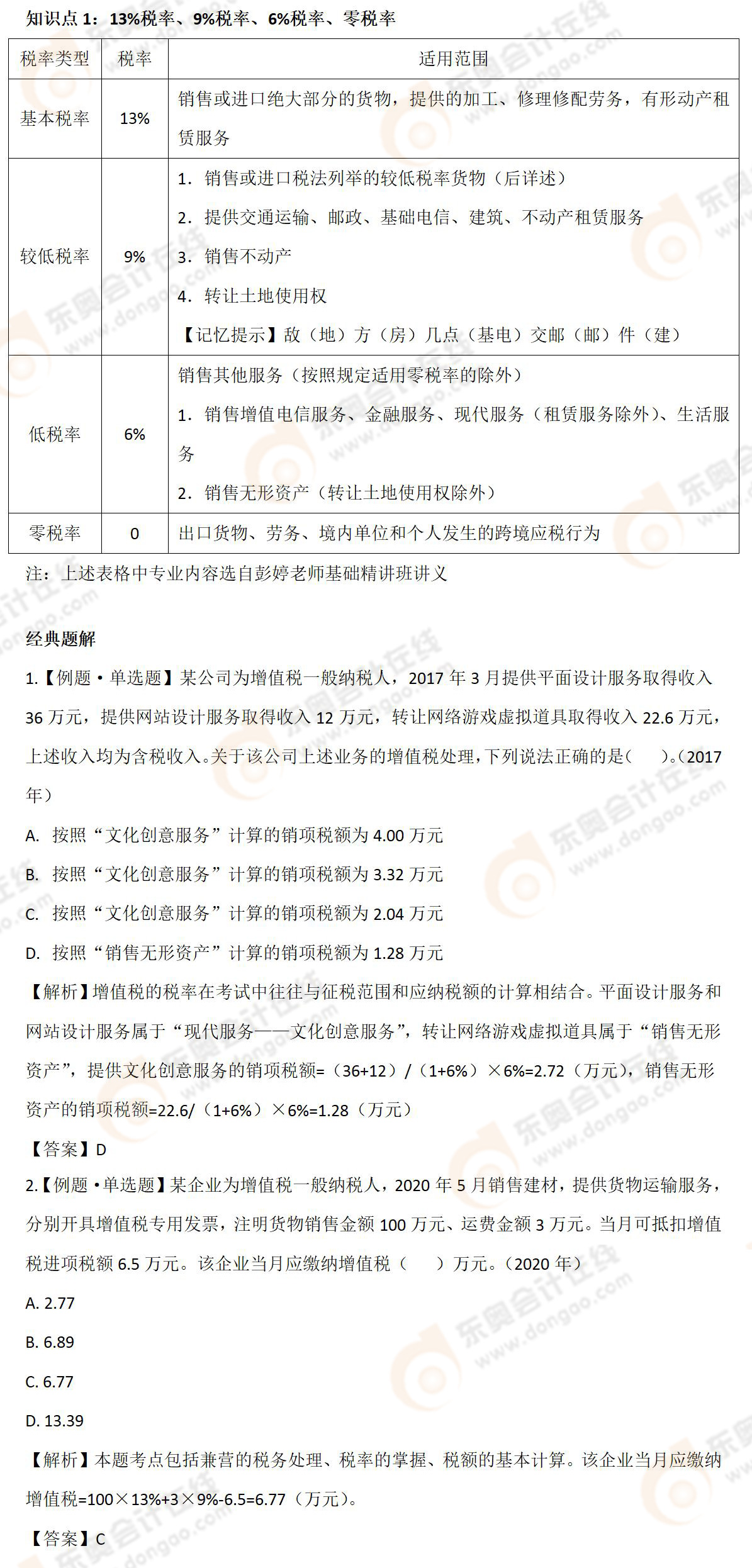 知識(shí)點(diǎn):稅率的適用范圍