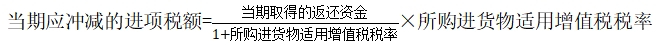 自2004年7月1日起,對商業(yè)企業(yè)向供貨方收取的與商品銷售量、銷售額掛鉤(如以一定比例、金額、數(shù)量計算)的各種返還收入,均應按照平銷返利行為的有關規(guī)定沖減當期增值稅進項稅額。應沖減進項稅額的計算公式調(diào)整為: