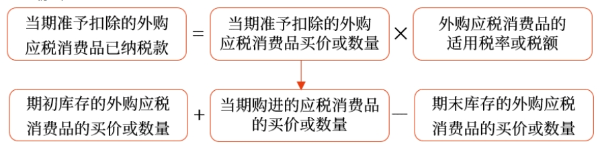 當(dāng)期準(zhǔn)予扣除的外購應(yīng)稅消費品已納消費稅稅款的計算公式: