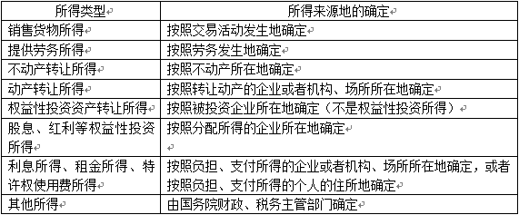 3.所得來源地的確定(客觀題考點(diǎn))
