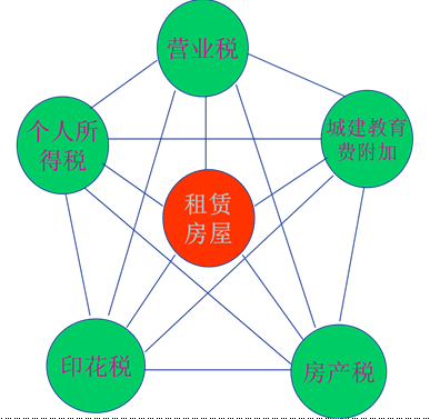 解釋:最重要的是房屋的租賃。涉及到多個(gè)稅種,營業(yè)稅、城建稅教育費(fèi)附加、房產(chǎn)稅、印花稅、個(gè)人所得稅 。