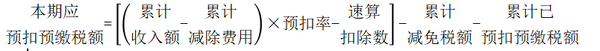 根據(jù)累計預(yù)扣預(yù)繳應(yīng)納稅所得額,對照《個人所得稅預(yù)扣率表一》,查找適用預(yù)扣率和速算扣除數(shù),據(jù)此計算累計應(yīng)預(yù)扣預(yù)繳稅額,再減除累計減免稅額和累計已預(yù)扣預(yù)繳稅額,其余額為本期應(yīng)預(yù)扣預(yù)繳稅額。具體公式:
