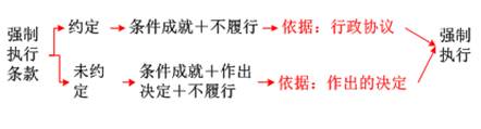 (2)行政協(xié)議中未約定強制執(zhí)行條款,一旦強制執(zhí)行條件成就的,行政機關(guān)可以作出要求相對人履行協(xié)議約定義務(wù)的決定,相對人拒不履行的,行政機關(guān)可以該決定為執(zhí)行依據(jù)向人民法院申請強制執(zhí)行或者依法自行強制執(zhí)行。