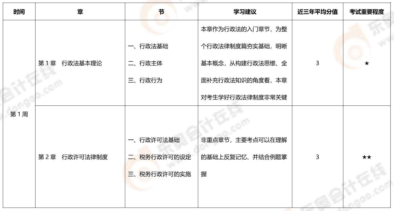 涉稅服務(wù)相關(guān)法律基礎(chǔ)階段學(xué)習(xí)計(jì)劃