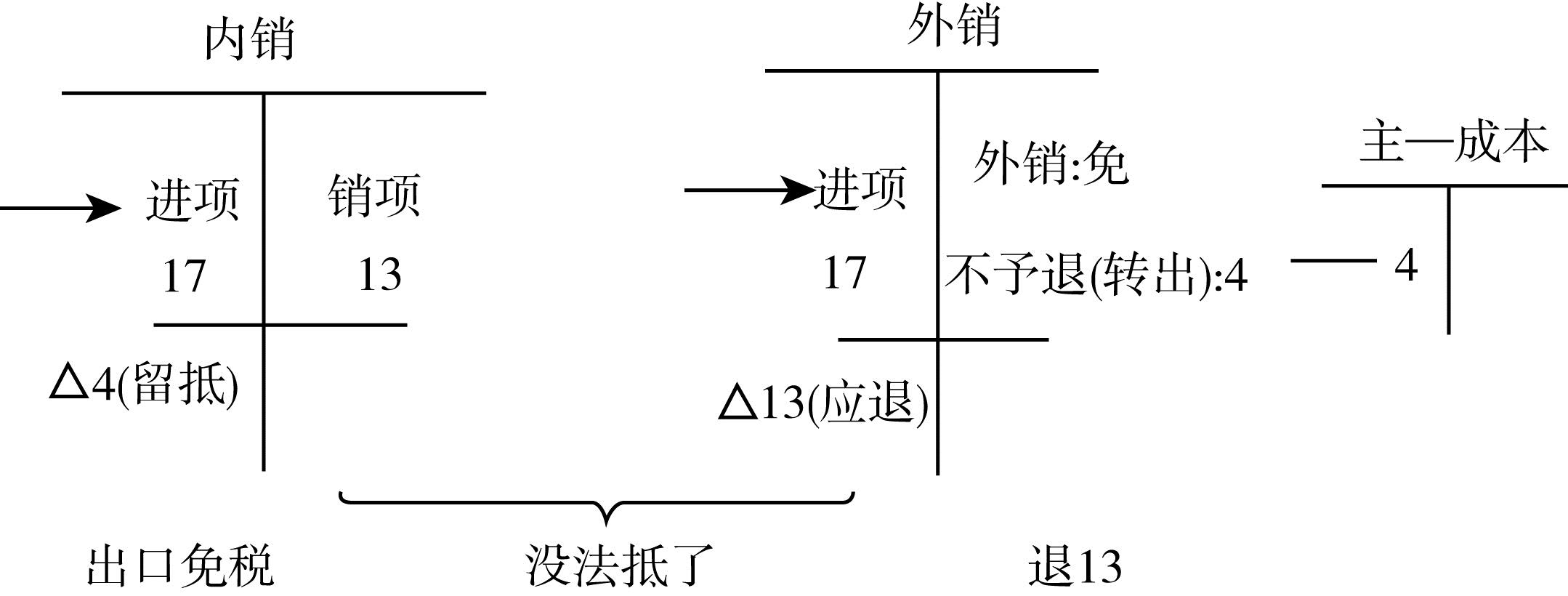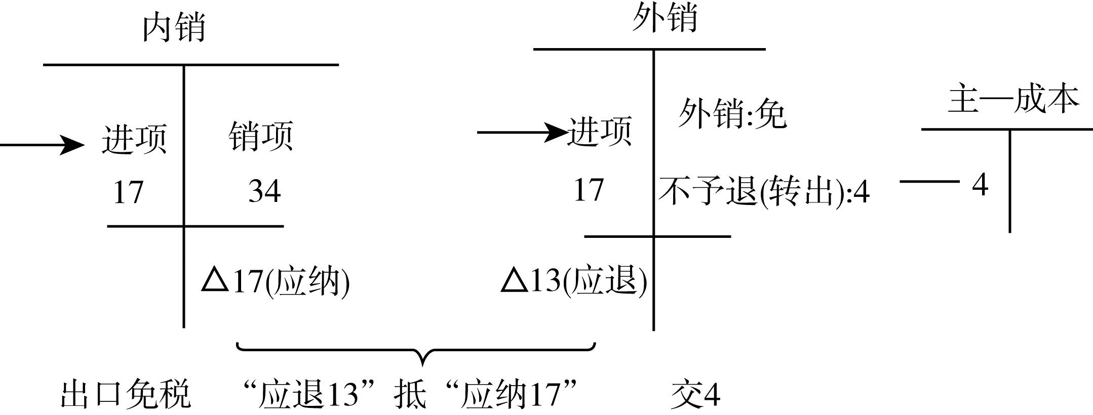 “抵”--就是用“內銷應納的稅款17”抵“外銷應退的稅稅款13”。
