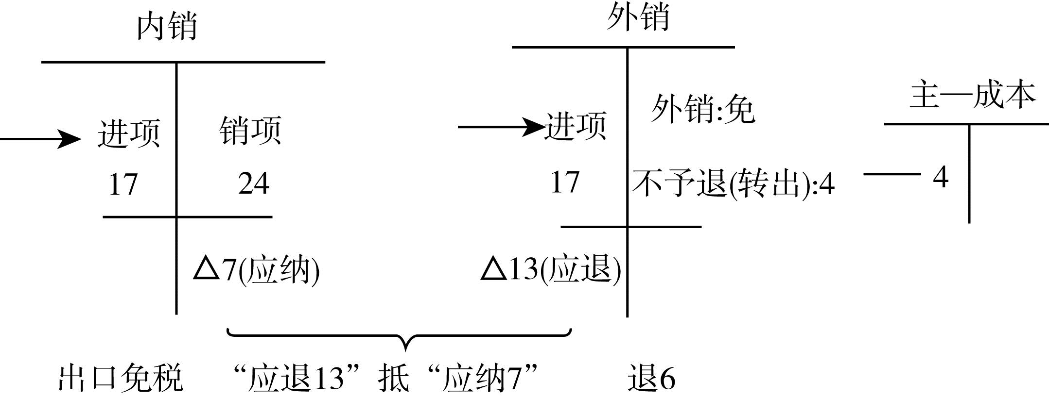 “抵”--就是用“內銷應納的稅款7”抵“外銷應退的稅稅款13”。