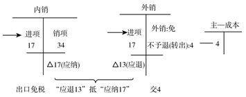 “抵”——就是用“內(nèi)銷應(yīng)納的稅款17”抵“外銷應(yīng)退的稅稅款13”。