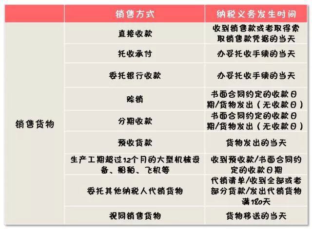 (三)采取賒銷和分期收款方式銷售貨物,為書面合同約定的收款日期的當天,無書面合同的或者書面合同沒有約定收款日期的,為貨物發(fā)出的當天;