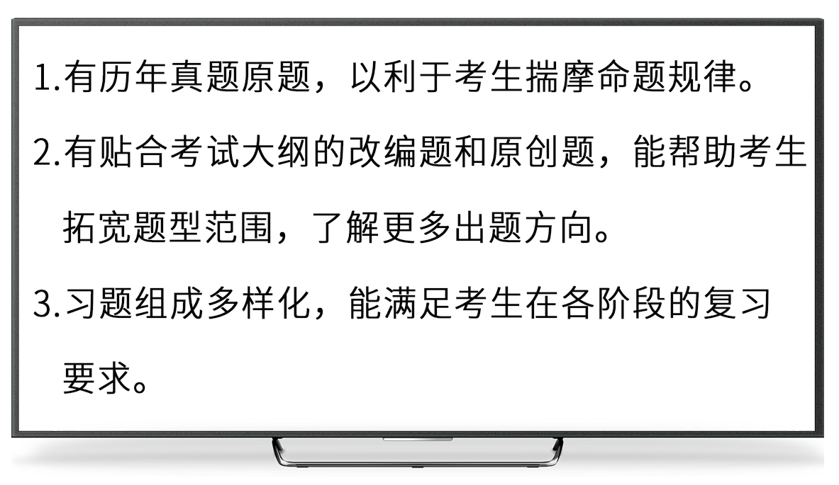 做題是考生用于加深知識(shí)點(diǎn)理解、鞏固記憶、提升運(yùn)用能力的首選工具,這也就意味著,一本高質(zhì)量備考用書(shū)中所含的習(xí)題要包含以下內(nèi)容。