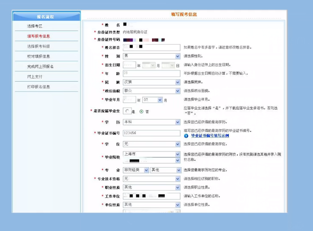 在填寫報名信息時,大家要嚴格按照要求進行填寫,圖中標記出的提示要更加注意。