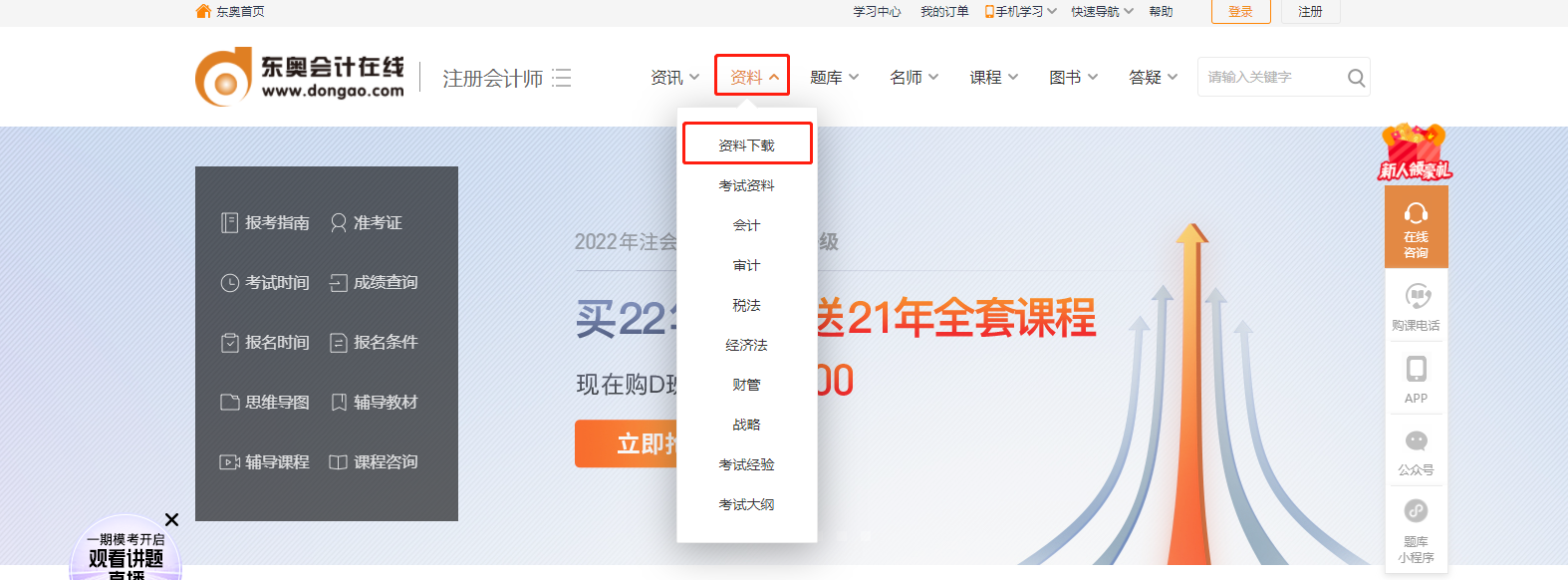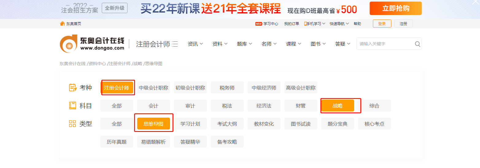 東奧會(huì)計(jì)在線注冊(cè)會(huì)計(jì)師頻道已經(jīng)將六科思維導(dǎo)圖上傳至資料庫(kù),具體下載步驟如下: