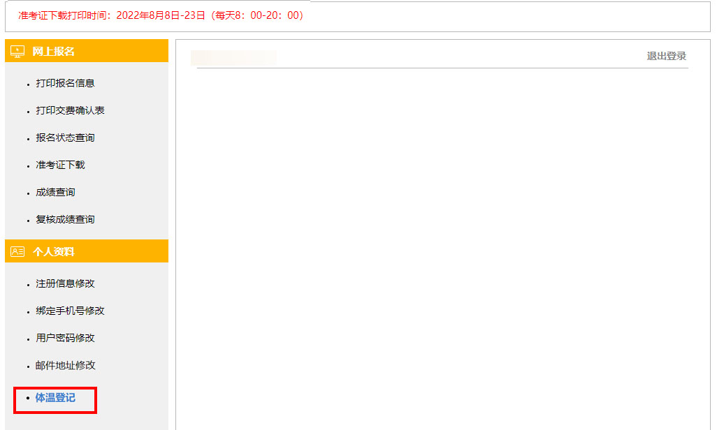 體溫監(jiān)測登記功能已于8月12日開放,考生需要從8月12日進(jìn)行體溫登記。