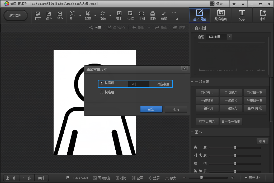 第二步:點(diǎn)擊“尺寸”旁下拉標(biāo)志,點(diǎn)擊“添加常用尺寸”,選擇“按寬度”輸入“178”,點(diǎn)擊確定后,再次展開尺寸旁下拉標(biāo)志,找到新添加尺寸并點(diǎn)擊,將圖片修改為178*對(duì)應(yīng)高度大小圖片。點(diǎn)擊圖片,查看大圖。