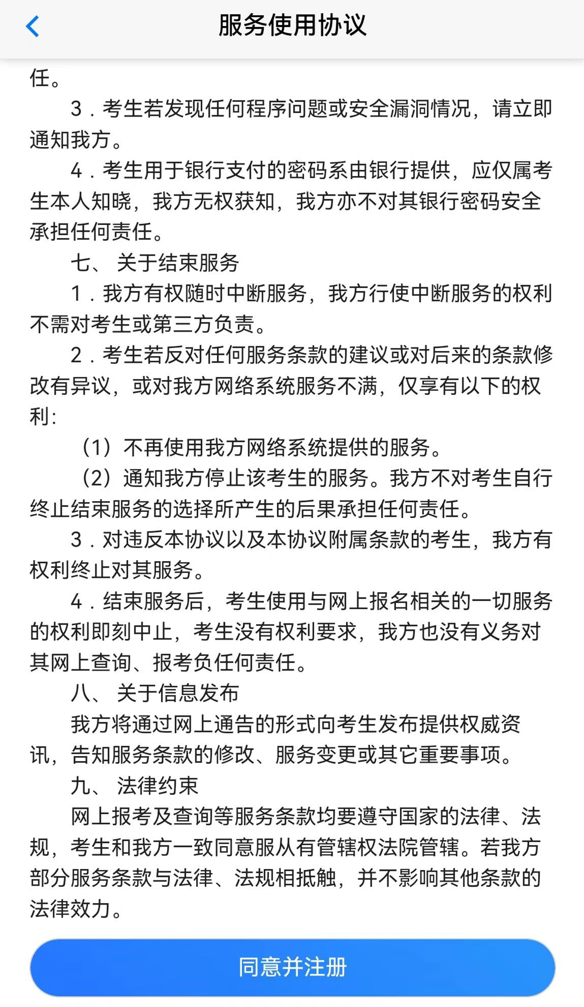 第三步:仔細(xì)閱讀“網(wǎng)上報(bào)名協(xié)議”和“違規(guī)行為處理辦法”,選擇“我已閱讀并遵守”。