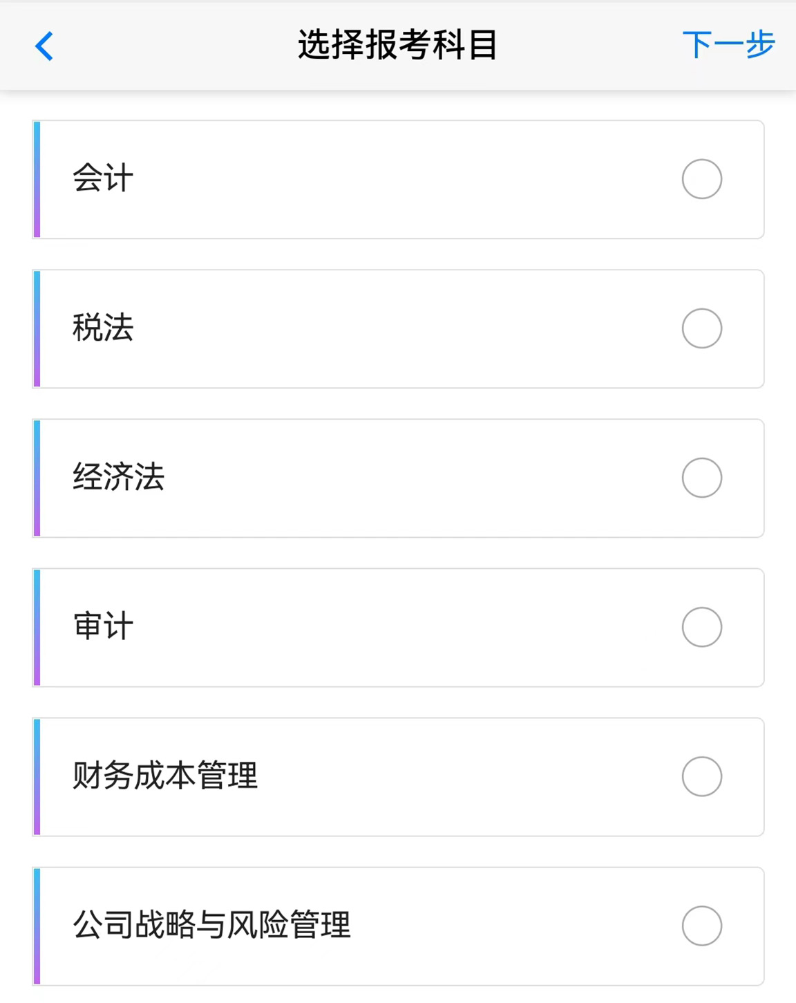 第六步:選擇報(bào)考科目,選中后點(diǎn)擊“下一步”