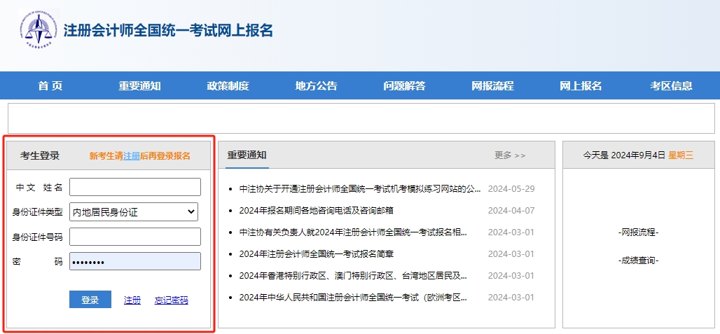 步驟3:考生輸入姓名、身份證號(hào)、密碼登錄網(wǎng)報(bào)系統(tǒng)。
