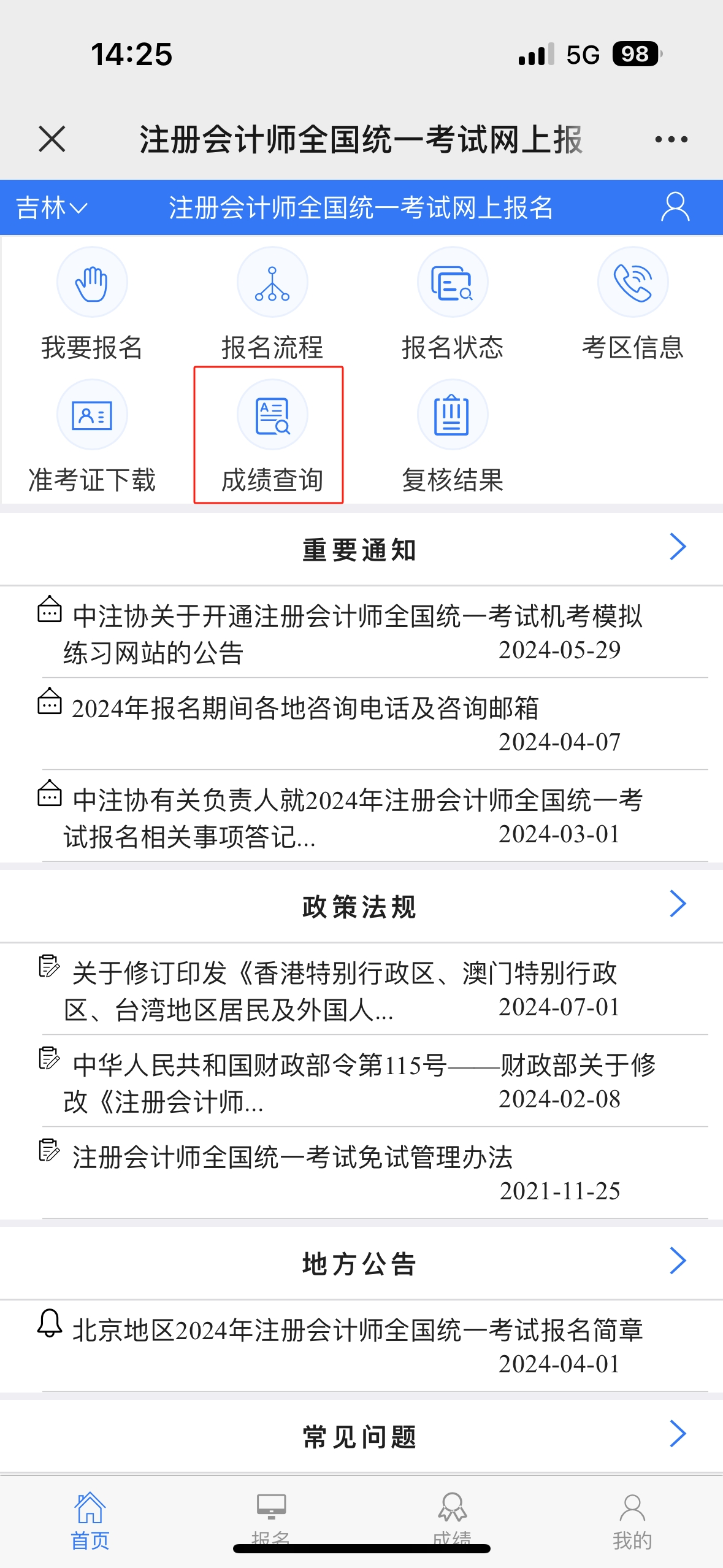 注冊(cè)會(huì)計(jì)師成績(jī)查詢流程圖解