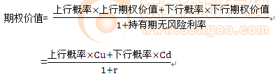 期望報酬率(無風(fēng)險利率)=上行概率×股價上升百分比+下行概率×股價下降百分比