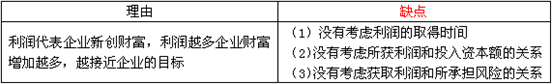 (1)沒(méi)有考慮利潤(rùn)的取得時(shí)間 (2)沒(méi)有考慮所獲利潤(rùn)和投入資本額的關(guān)系 (3)沒(méi)有考慮獲取利潤(rùn)和所承擔(dān)風(fēng)險(xiǎn)的關(guān)系 |