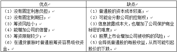 【重要知識(shí)點(diǎn)】:普通股融資的特點(diǎn)