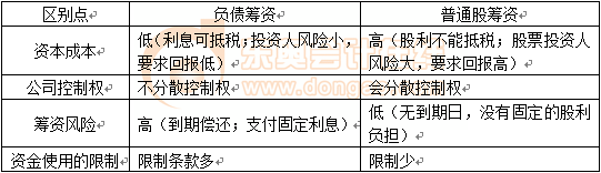 1.負債籌資與普通股籌資相比的特點