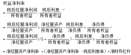 =凈經(jīng)營(yíng)資產(chǎn)凈利率+(凈經(jīng)營(yíng)資產(chǎn)凈利率-稅后利息率)×凈財(cái)務(wù)杠桿