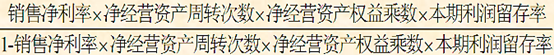 =銷售凈利率×凈經營資產周轉次數(shù)×期初權益期末凈經營資產乘數(shù)×本期利潤留存率