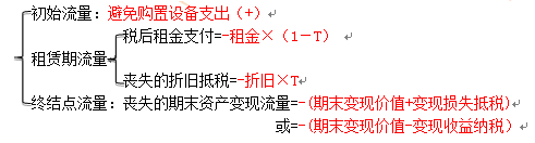 (1)承租人現(xiàn)金流量(租賃相比自行購(gòu)買(mǎi)的差量?jī)衄F(xiàn)金流量)