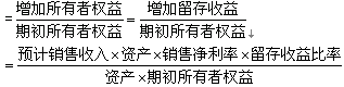 =資產(chǎn)周轉(zhuǎn)率×銷售凈利率×期初權(quán)益期末總資產(chǎn)乘數(shù)×收益留存率
