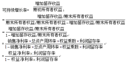 可持續(xù)增長率=銷售凈利率×總資產(chǎn)周轉(zhuǎn)率×收益留存率×期初權(quán)益期末總資產(chǎn)乘數(shù)