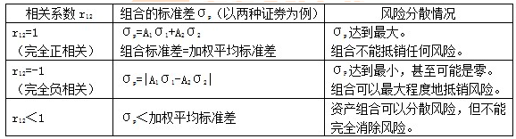 (2)相關(guān)系數(shù)與組合風險之間的關(guān)系