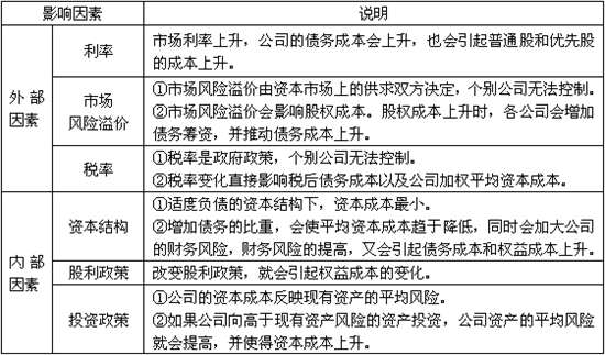 【知識點】:影響資本成本的因素