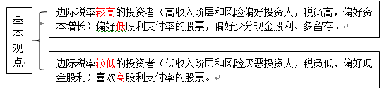 【提示】客戶效應(yīng)理論是對(duì)稅差效應(yīng)理論的進(jìn)一步擴(kuò)展,研究處于不同稅收等級(jí)的投資者對(duì)待股利分配態(tài)度的差異。
