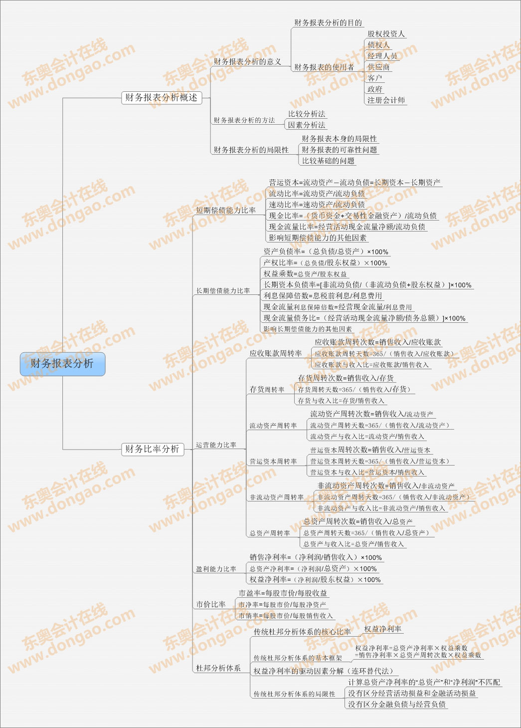 【東奧小編】2014年注冊(cè)會(huì)計(jì)師考試正式進(jìn)入基礎(chǔ)備考階段,注會(huì)知識(shí)點(diǎn)繁雜細(xì)碎,想要全面掌握注會(huì)各科目的知識(shí),需要科學(xué)高效的學(xué)習(xí)方法,思維導(dǎo)圖正是一種非常適合注會(huì)復(fù)習(xí)的學(xué)習(xí)方法,正確利用思維導(dǎo)圖,不僅能使自己積極進(jìn)行知識(shí)點(diǎn)總結(jié),形成清晰的思路,還能對(duì)知識(shí)點(diǎn)進(jìn)行快速查漏補(bǔ)缺。以下是2014注會(huì)《財(cái)務(wù)成本管理》第二章財(cái)務(wù)報(bào)表分析思維導(dǎo)圖: