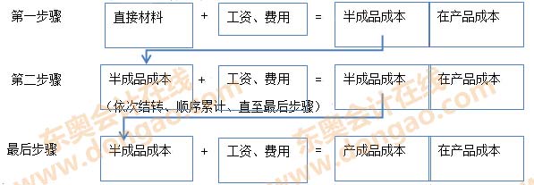 逐步結(jié)轉(zhuǎn)分步法是按照產(chǎn)品加工的順序,逐步計算并結(jié)轉(zhuǎn)半成品成本,直到最后加工步驟才能計算產(chǎn)成品成本的一種方法。