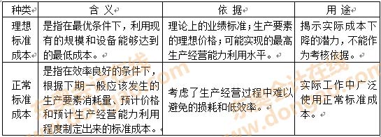 【知識點】:標(biāo)準(zhǔn)成本的分類