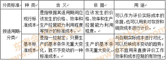 (二)標(biāo)準(zhǔn)成本按其適用期,分為現(xiàn)行標(biāo)準(zhǔn)成本和基本標(biāo)準(zhǔn)成本。